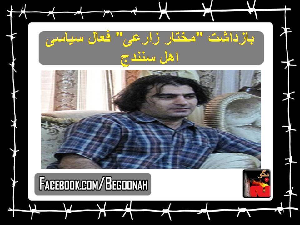 بگونه: مختار زارعی فعال سیاسی اهل سنندج صبح یکشنبه با حکم دادستانی رژیم در منزل خود بجرم انتشار یادداشتی در فیسبوک شخصی خود بازداشت شد.
