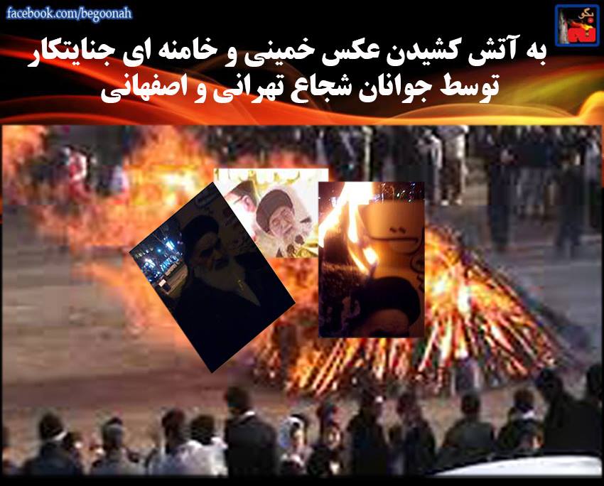 بگونه: جوانان خسته از ظلم ملایان و منزجر از چهره هایی که در طی سالهای گذشته باعث کشتار و خفقان و نیستی و نابودی برای میهن بوده اند، در اقدامی سمبلیک جهت نشان دادن تنفر خود از حکومت ملایان در تهران در منطقه ولنجک و همچنین در اصفهان عکس خمینی و خامنه ای جنایتکار را به آتش کشیده و سوزاندند. همچنین در تهران در فلکه اول و دوم تهران پارس، اطراف هفتحوض و چهار راه سرسبز نارمک، آریاشهر (صادقیه)، سعادت آباد، کوچههای اطراف خیابان شریعتی و بهار، زیر پل حافظ، نواب، بریانک، پیروزی، پرستار و منطقه جلفا در نزدیکی میدان محسنی، مردم به برگزاری جشن چهارشنبهسوری پرداخته و پس از تاریکی هوا بهطور مستمر صدای ترقه و نارنجک صوتی به گوش میرسید. در میدان تجریش به سمت میرداماد گلههای نیروهای سرکوبگر به ماشین گردی و ایست و بازرسی مشغول بودند.