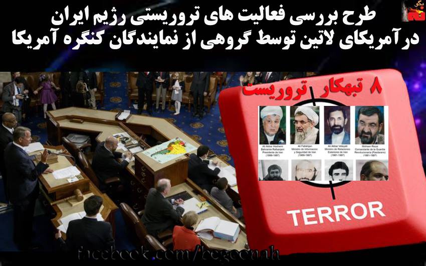 #بگونه: در حاليكه دولت بارك اوباما براي معامله و مماشات با رژيم ضد ايراني و تروريست آخوندها مذاكره با اسد را پيشنهاد و سپس ماستمالي مي كند، گروهی از نمایندگان كنگره آمريكا از حزب جمهوریخواه قصد دارند در جلسه روز چهارشنبه، ۲۷ اسفند، کنگره طرحي را بريا بررسي فعاليت هاي تروريستي رژيم ايران در آمريكاي لاتين مطرح نمايند.