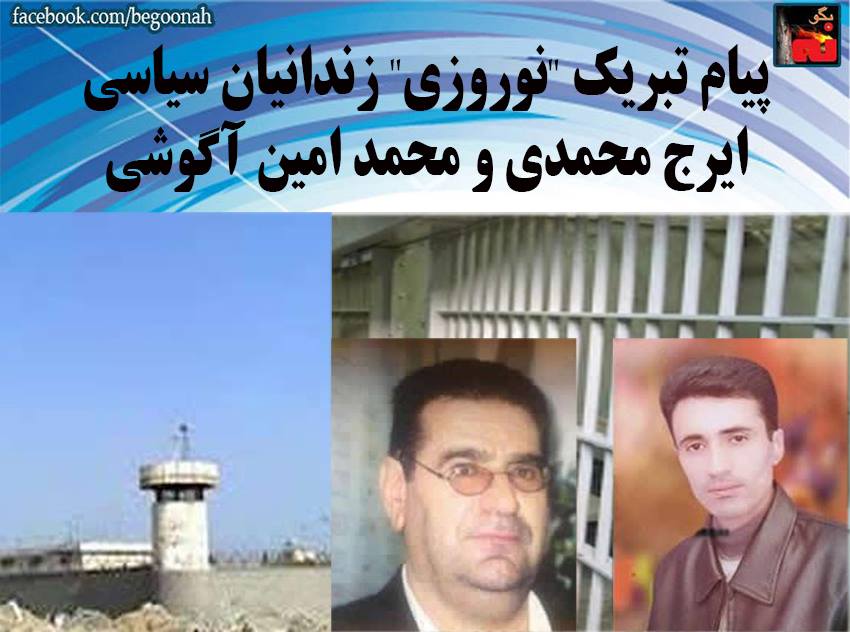 اینجانبان ایرج محمدی و محمد امین آگوشی زندانیان سیاسی تبعیدی در زندان زاهدان آغاز سال ۱۳۹۴ خورشیدی و عید سعید باستانی نوروز را بهمحضر ملت شریف ایران تبریک عرض مینماییم. ایرانیان عزیز سالی که گذشت سال خفقان و ترس عمومی برای مردم و سال اعدامهای دسته جمعی و شکنجه برای زندانیان بود که در اثر آن چه زنهایی که بیوه نشده و چه بچههایی که یتیم نشدند که امیدواریم با خیزش شما مردان و زنان غیور ایران این فضای آلوده و وحشتناک از جامعه ایران بهزودی رخت برکند.