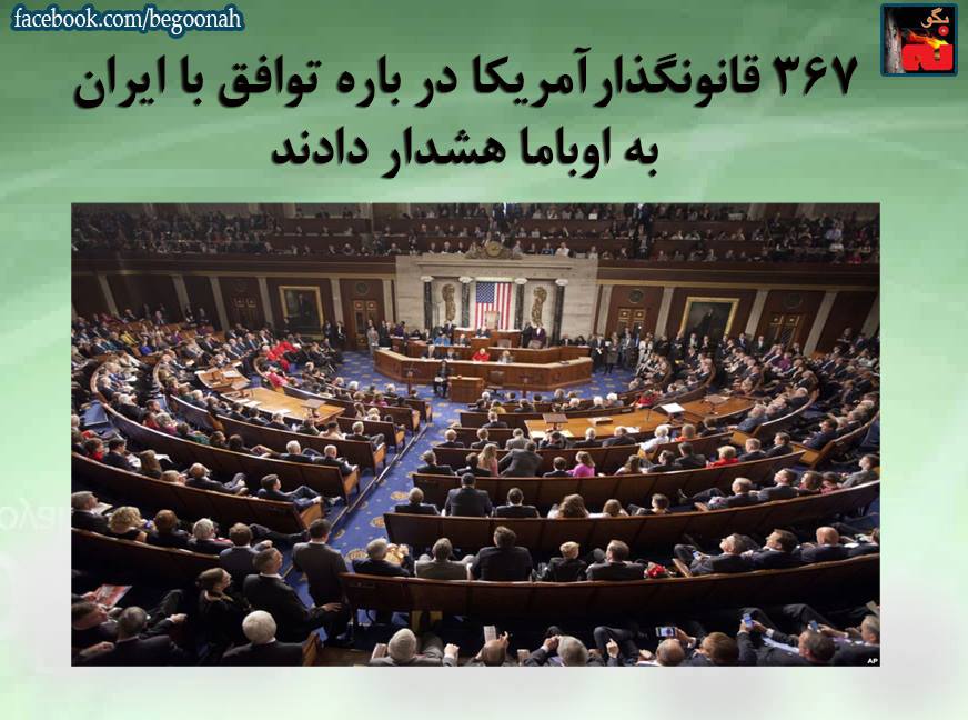بگونه: به گزارش راديو آلمان،۳۶۷ تن از قانونگذاران آمریکایی با امضای نامهای به باراک اوباما، رئیسجمهور آمریکا هشدار دادند که هر گونه توافق احتمالی اتمی با ایران برای اجرایی شدن باید تأیید کنگره را بهدست بیاورد.