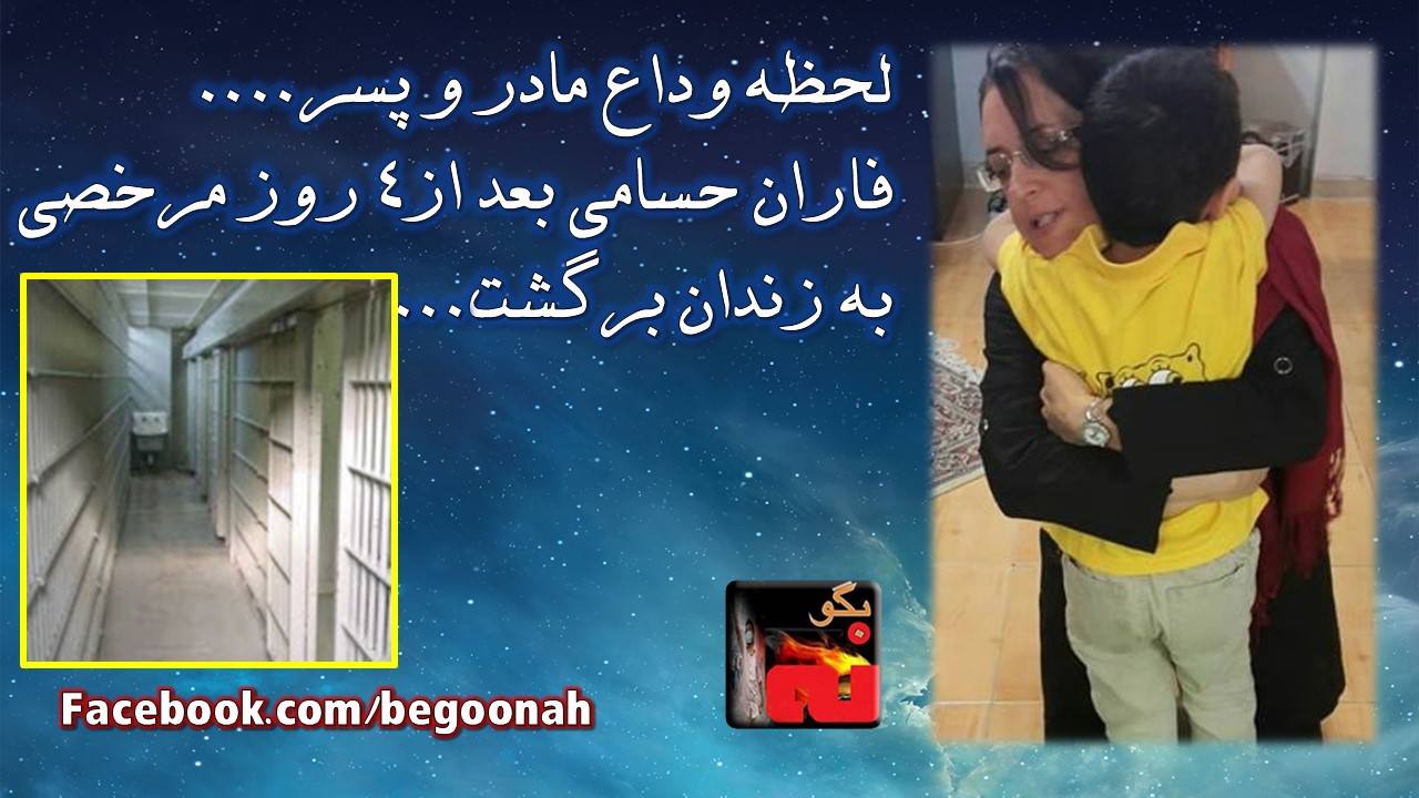 لحظه وداع مادر و پسر….فاران حسامی بعد از4 روز مرخصی به زندان برگشت