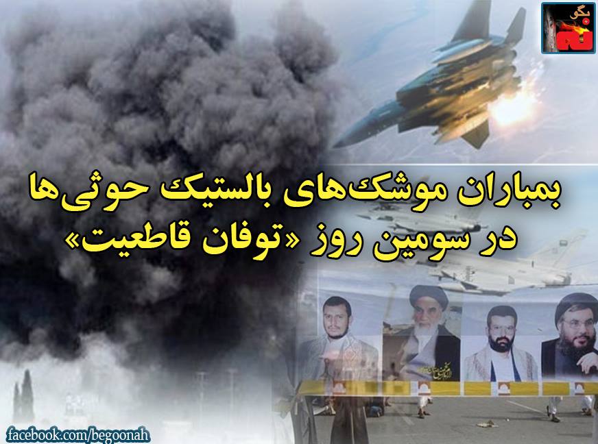 #بگونه: منابع یمنی روز شنبه ۲۸-۳-۲۰۱۵ اعلام کردند که جنگندههای «ائتلاف حمایت از مشروعیت» تعدادی زیادی از موشکهای بالستیک حوثیها را بمباران و منهدم کردند.