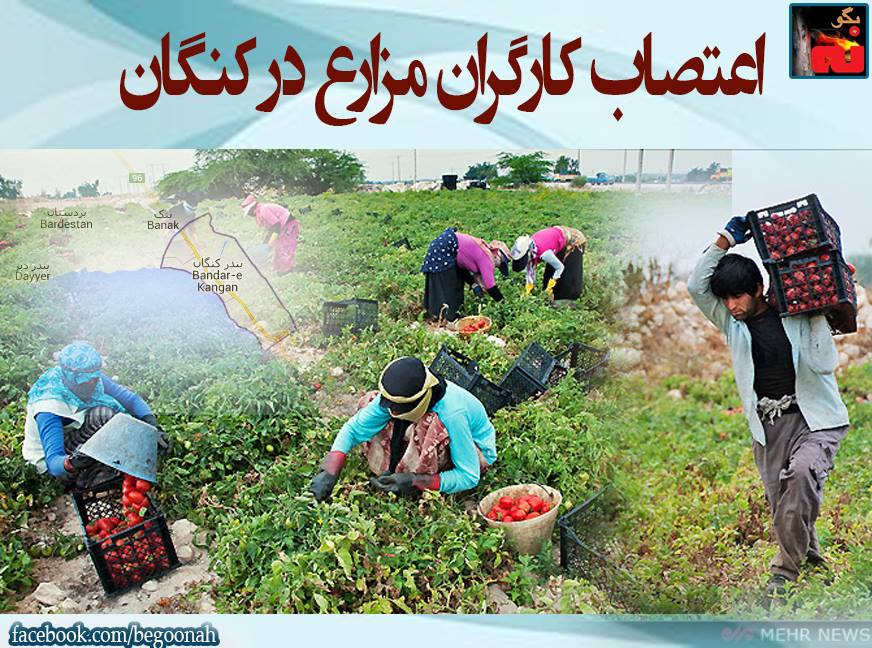 #بگونه: بگزارش رسیده از کنگان کارگران در مزارع بدلیل عدم پرداخت حقوق خود اعتصاب کرده اند. یک کارگر اطلاع داده است: