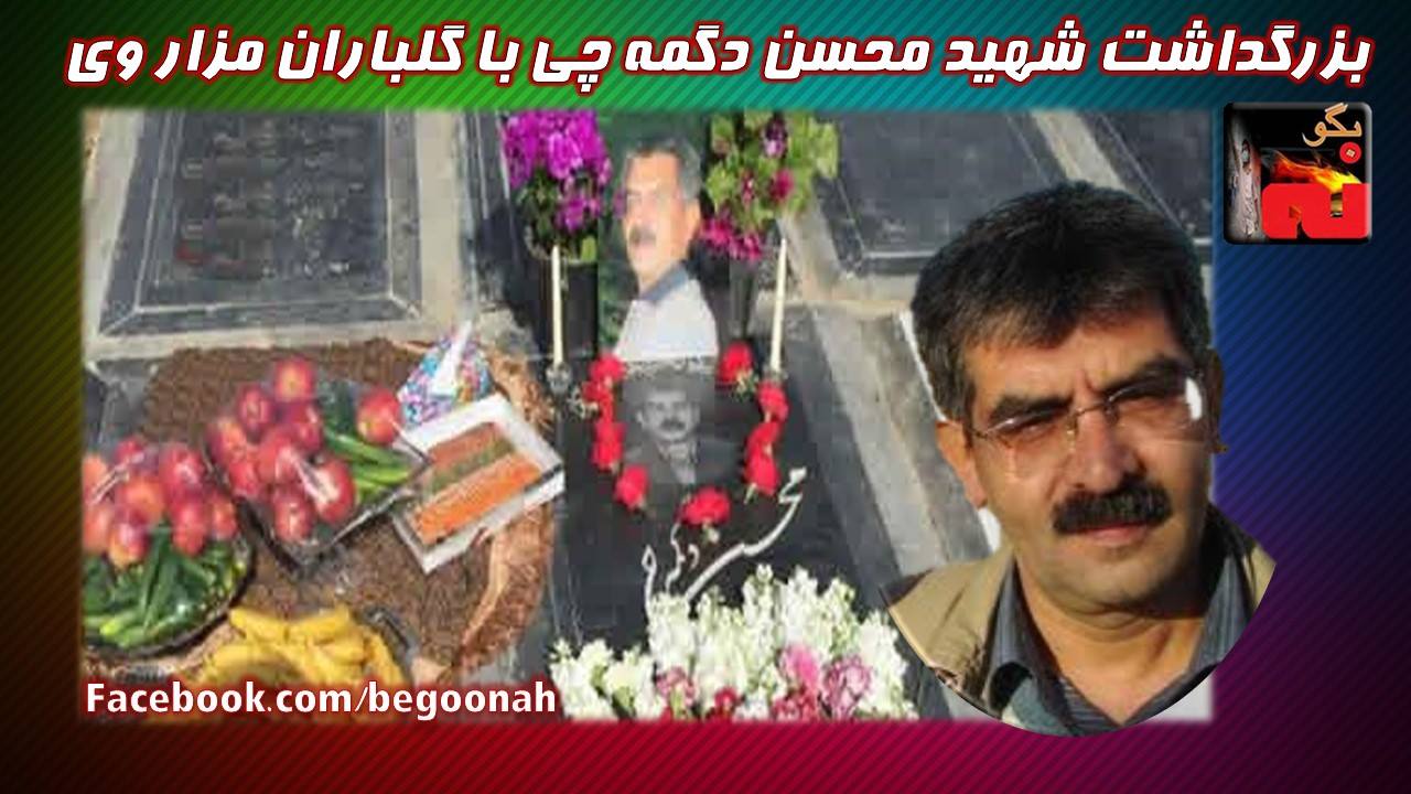 بگونه:در هشتمین روز بهار و در چهارمین سال شهادت محسن دگمهچی در زندانهای خامنهای جلاد، خویشان و یاران او با گلباران کردن مزارش خاطره این زندانی سیاسی مقاوم را ارج نهادند. مجاهد خلق محسن دگمهچی که از بازاریان خوشنام تهران بود با 9سال سابقه اسارت در سیاهچالهای ولیفقیه ارتجاع در هشتم فروردین 1390 بر اثر ابتلا به بیماری سرطان درگذشت.