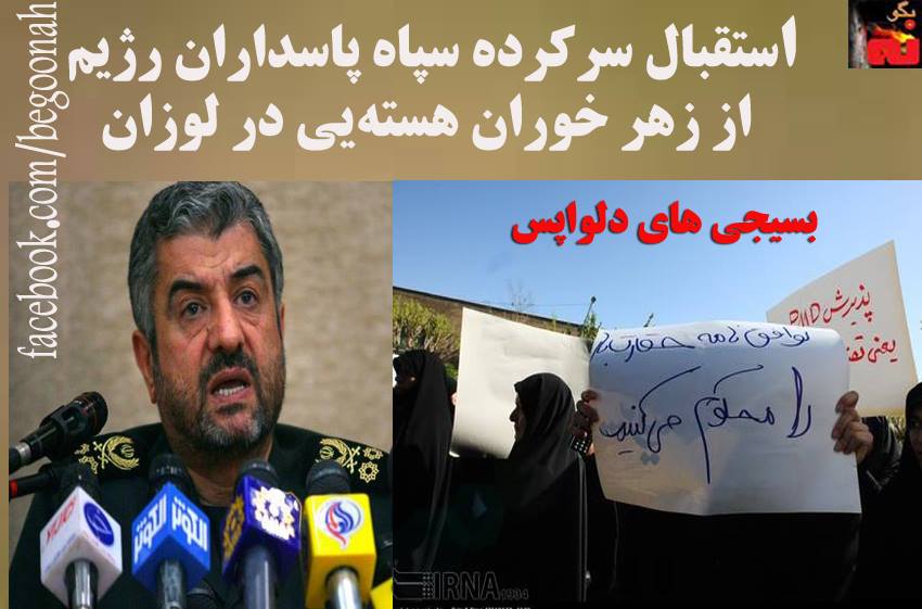 #بگونه: در حالي كه هنوز علي خامنه اي ولي فقيه نظام در باره زهرخوران اتمي در لوزان سكوت كرده و خفقان گرفته است، سركرده پاسداران رژيم محمد علي جعفري پس از چهار روز سكوت از زهر خوران هسته اي در لوزان سوئيس استقبال كرد.