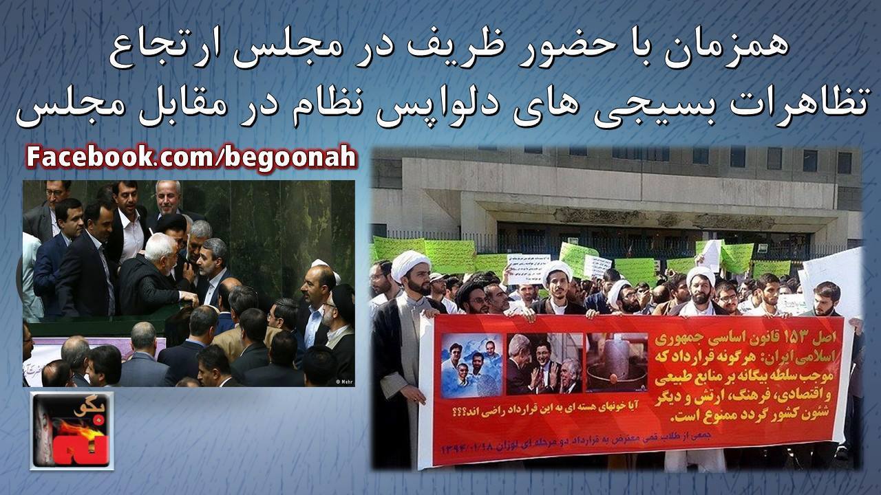 این تظاهرات همزمان با حضور جواد ظریف در جلسه غیرعلنی مجلس ارتجاع برگزار شد.