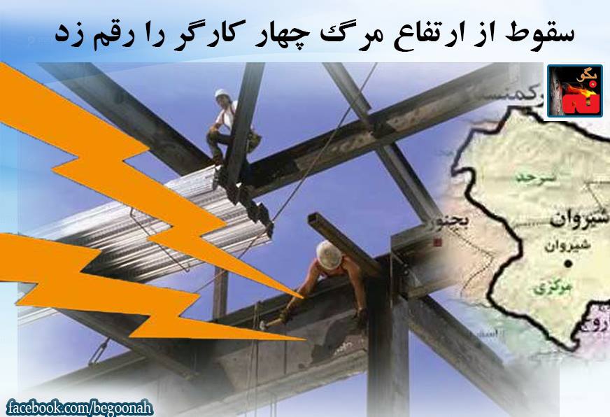 #بگونه: معاون فرماندار شهرستان شیروان به نقل از روزنامه حکومتی مهر خبرداد که عصر پنجشنبه، ۱۹ فروردین، در حالیکه شماری از کارگران نیروگاه مشغول کار بر روی قسمت برج خنک کننده و جابجایی قالبهای بدنه بتن ریزی شده آن بودند بر اثر سقوط از ارتفاع ۵۰ متری، ۴ کارگر جان باختند. محمد عوضزاده همچنان گفت: در این حادثه یک نفر از کارگران نیز به دلیل صدمه شدید به بیمارستان بجنورد منتقل شد.