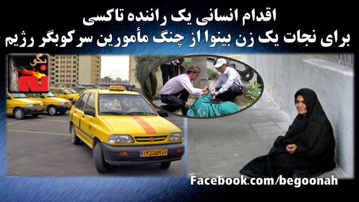 #بگونه: به گزارش دانشجو آنلاين به نقل از منابع مردمي، حوالي ساعت ۱۱:۰۰ روز یکشنبه در خیابان شریعتی نرسیده به پل صدر، عده ای از مأموران شهرداری به دنبال یک خانم متکدی بودند تا وی را دستگیر و به اتوبوس شهرداری منتقل کنند. در اين حين یک راننده تاکسی كه متوجه اين هدف مأموران شده بود مقابل آن ها ترمز کرده و با عصبانیت از خودرو پیاده شده و با صدای بلند به مأموران گفته که «نزدیک بود شما را زیر بگیرم، آنوقت بدبخت بودم، چرا اينطوري جلوي ماشين مردم سبز ميشويد و …»
