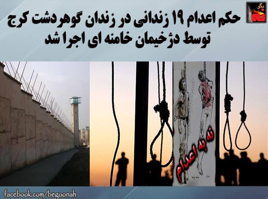 حکم اعدام ١٩ زندانی در زندان گوهردشت کرج توسط دژخیمان خامنه ای اجرا شد