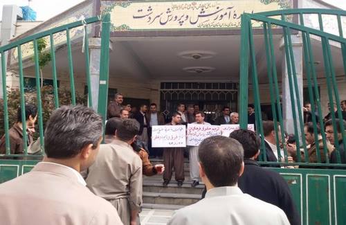 معلمان معترض در شهر دیواندره با حمل پلاکارد و نوشتههایی نظیر «تضعیف فرهنگیان تخریب فرهنگ است، «این سکوت از نارضایتی است» و «نسخههای توخالی و عوام فریب، دردی را دوا نمیکند» در مقابل اداره آموزش و پرورش این شهر تجمع کردند.