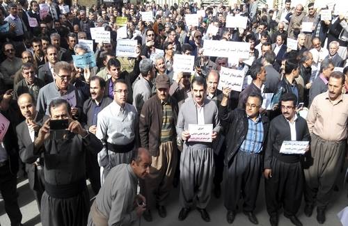 #بگونه: معلمین شهرهاي كردنشين ايران همراه با معلمين سراسر كشور دوباره در پي فراخوان عمومي براي تجمع و اعتراض عليه تبعيض و بي حقوقي دست به تجمعات گسترده اعتراضي زدند.