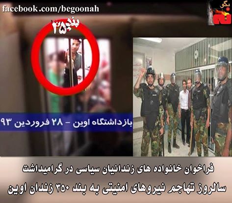 فراخوان خانواده های زندانیان سیاسی در گراميداشت سالروز تهاجم نیروهای امنیتی به بند ۳۵۰ زندان اوین در ۲۸ فروردین ۱۳۹۳