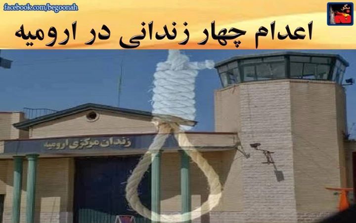 #بگونه: در اولین ساعتهای بامداد روز دوشنبه 31فروردین چهار زندانی توسط جلادان ولايت فقيه در زندان ارومیه بدار آویخته شدند. بنابه گزارش فعالين حقوق بشري اين ن چهار زندانی روز قبل بريا اجرای حکم اعدام به قرنطینه زندان منتقل شده بودند. خانوادههای این زندانیان بعدازظهر روز یکشنبه 30فروردین بعد از اطلاع از احتمال اجرای حکم اعدام بستگان خویش، در مقابل زندان ارومیه دست به تجمع زدند. ماموران رژیم آخوندی با حمله به خانوادهها تلاش کردند از اجتماع آنها جلوگیری نمايند که به درگیری بين ماموران رژيم و خانوادهها و شکستن شیشه درهای ورودی زندان منجر گرديد. افزايش اعدام ها توسط رژيم حاكم برايران براي مهار بحرانهاي لاعلاج اجتماعي است كه روز به روز بر ابعاد آن افزوده ميشود و عمق نارضايتي جامعه از حاكمان مستبد و خونريز به وسعت و ژرفاي جنايات وظلم و ستمي است كه اين رژيم در طول عمر ننگين خود مرتكب شده است. لذا اعدام تنها چاره رژيم براي خاموش كردن آتشفشان شعله ور خشمي است كه هر آن بيم فورانش مي رود مي باشد، كه چاره ساز نخواهد بود.