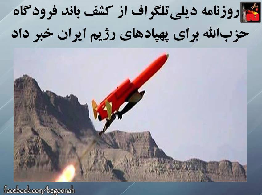 #بگونه: روزنامه دیلیتلگراف چاپ لندن در گزارشي در روز جمعه 4اردیبهشت 94 اعلام كرد كه بر اساس عکسهای ماهوارهیی، یک باند فرودگاه در دره بقاع در شمال لبنان متعلق به گروه حزبالله کشف گردیده که برای بهکارگیری پهپادهای رژیم ایران ساخته شده است. به گزارش ديلي تلگراف ،پرواز این پهپادها بر فراز سوریه صورت میگیرد.