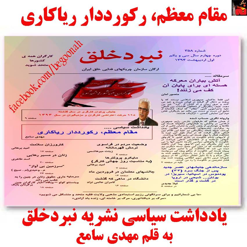منبع: نبرد خلق شماره 358، سه شنبه اول ارديبهشت 1394(21 آوريل 2015)