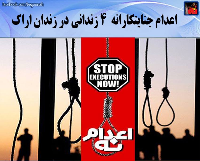 بگونه : رژیم جنایتکار آخوندی روز یکشنبه 6اردیبهشت ، 4زندانی را در اراک اعدام کرد.