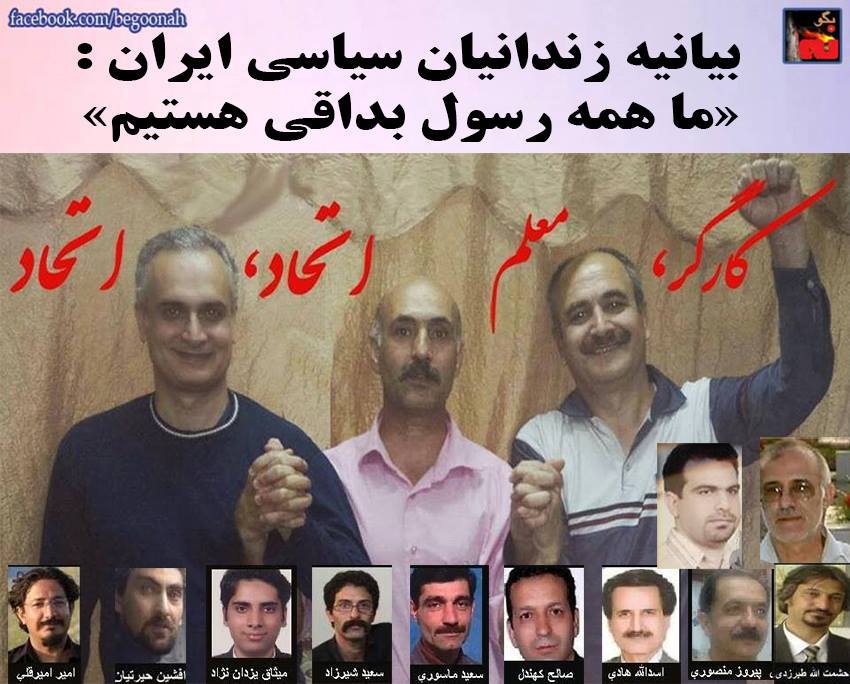 بگونه : بیانیه جمعی از زندانیان سیاسی زندان های رژیم ، تحت عنوان « ما همه رسول بداقی هستیم » :
