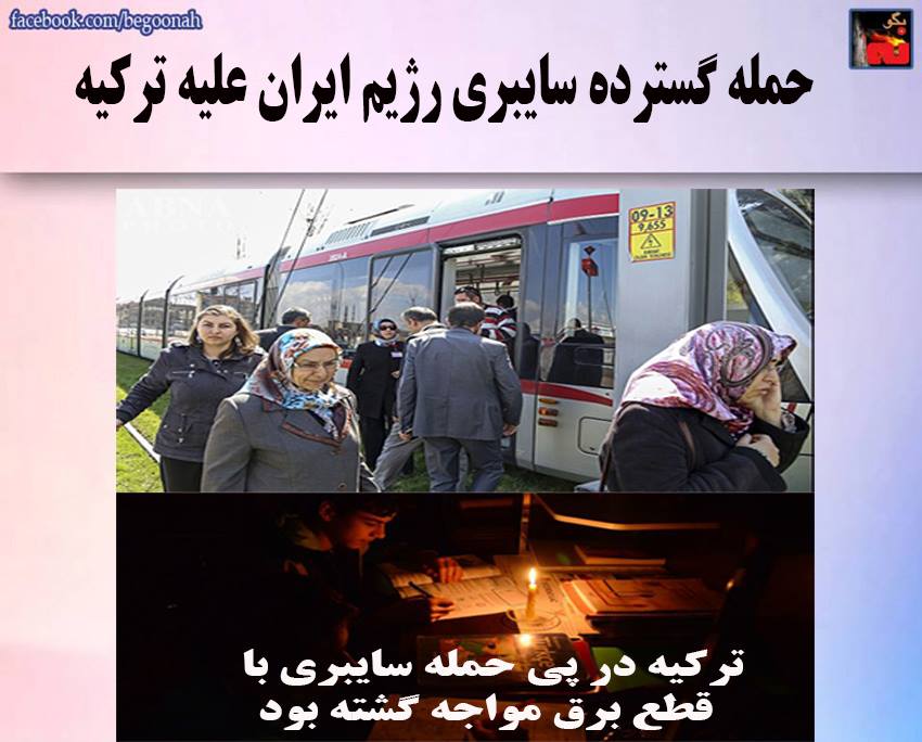 بگونه : بنا به گزارش خبرگزاری آبزرور ، رژیم ایران در روز ۱۱ فروردین یک حمله گسترده سایبری به ترکیه را سازماندهی کرده بود. این حمله منجر به قطع وسیع برق در نیمی از استانهای ترکیه گردید و به مدت ۱۲ ساعت ۴۰میلیون نفر در تاریکی قرار گرفتند و همه چیز از جمله کامپیوترها، فرودگاهها، ترافیک هوائی، بیمارستانها و سیستم آب و فاضلاب متوقف شدند.