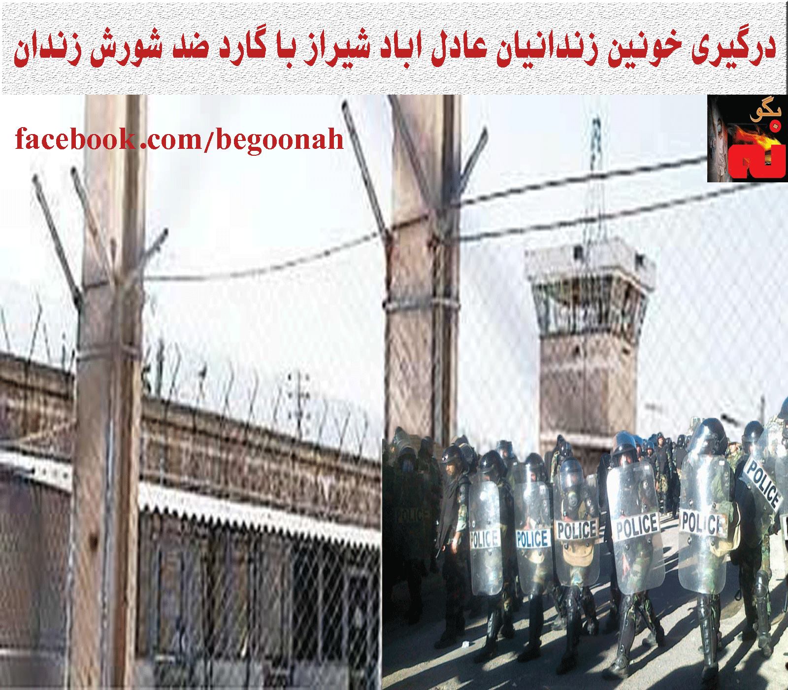 #بگونه : بر اساس گزارشات دریافتی از زندان عادل آباد شیراز، حوالی ظهر امروز چهارشنبه 9 اردیبهشت94 ، زندانیان محبوس در بند 11 زندان عادلآباد شیراز با گارد ضدشورش زندان درگیر شدند. در این درگیری که بهدنبال انتقال 6 زندانی برای اجرای حکم ضد انسانی اعدام صورت گرفت، تعداد زیادی از زندانیان و نیز دژخیمان گارد زخمی شدند.