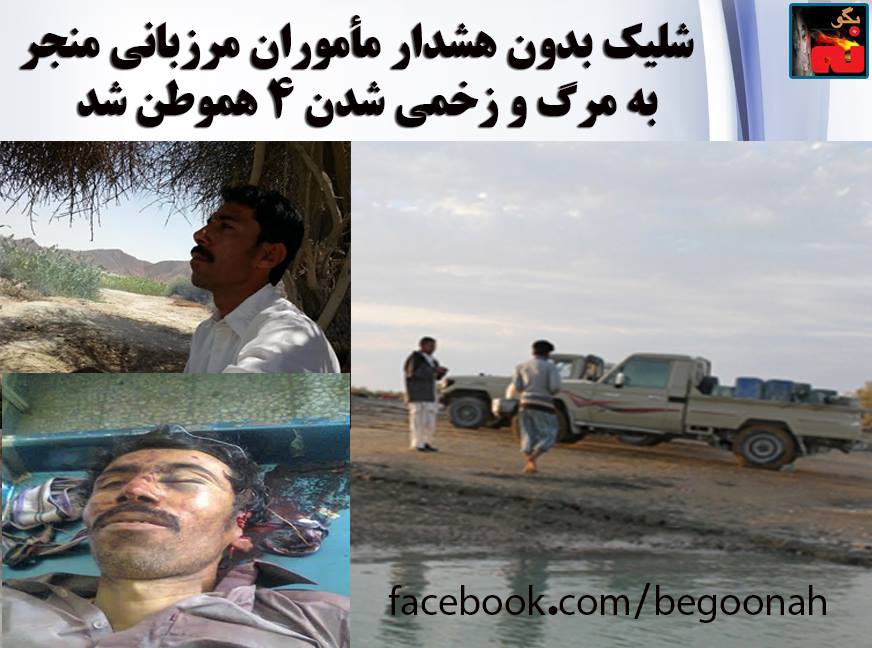 #بگونه : بنابر گزارش کمپین فعالین بلوچ، بعداز ظهر یکشنبه 6 اردیبهشت ماه در تیراندازی ماموران مرزبانی پاسگاه 43 نگور دو هموطن بلوچ کشته و دو تن دیگر زخمی شدند.