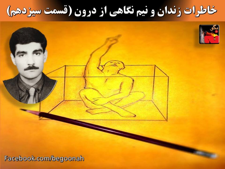 #بگونه : گرچه سلول خیلی کوچکی بود و به سختی هر دو با هم میتوانستیم دراز بکشیم، ولی این جمله غلام حسین که: ما در دهه ی ۶۰ در همین سلول ۱۲ نفر بودیم، بسیار برایم قوت قلب بود… و خلاصه هربار که از شرایط ابراز ناراحتی میکردم با خاطراتی از زندان های سال های ۶۰ مرا سر جایم می نشاند و میگفت ظرفیت تحمل سختی در انسان بسیار بالاتر از آن است که بتوان حتی تصورش را کرد…