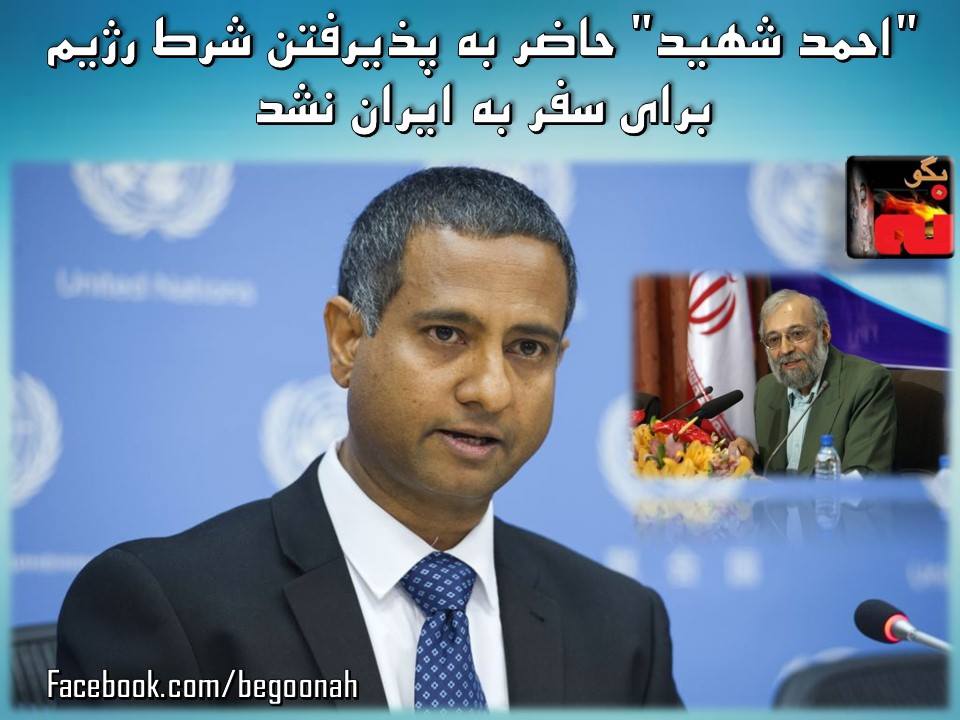 به گفته جواد لاریجانی: رژیم پیشنهاد کرده است که از 1000 مورد اتهام که توسط گزارشگر ویژه ثبت شده، تنها دو مورد در سفر به ایران مورد بررسی قرار گیرد، اما احمد شهید میگوید باید هر 1000 اتهام مورد بررسی قرار گیرد.
