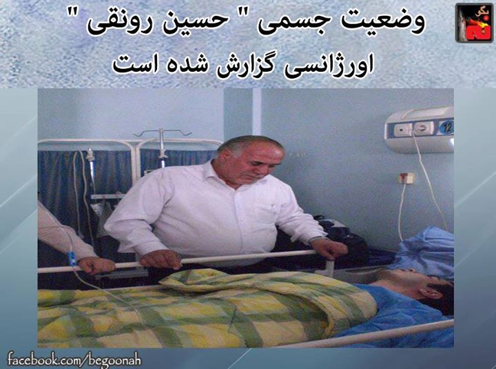 #بگونه : طبق آخرین اخبار دریافتی از درون زندان اوین ، وضعیت جسمی زندانی سیاسی » حسین رونقی » اورژانسی گزارش شده است. یک منبع اگاه اعلام کرده در صورت عدم درمان این زندانیانی سیاسی احتمال مرگ وی وجود دارد.