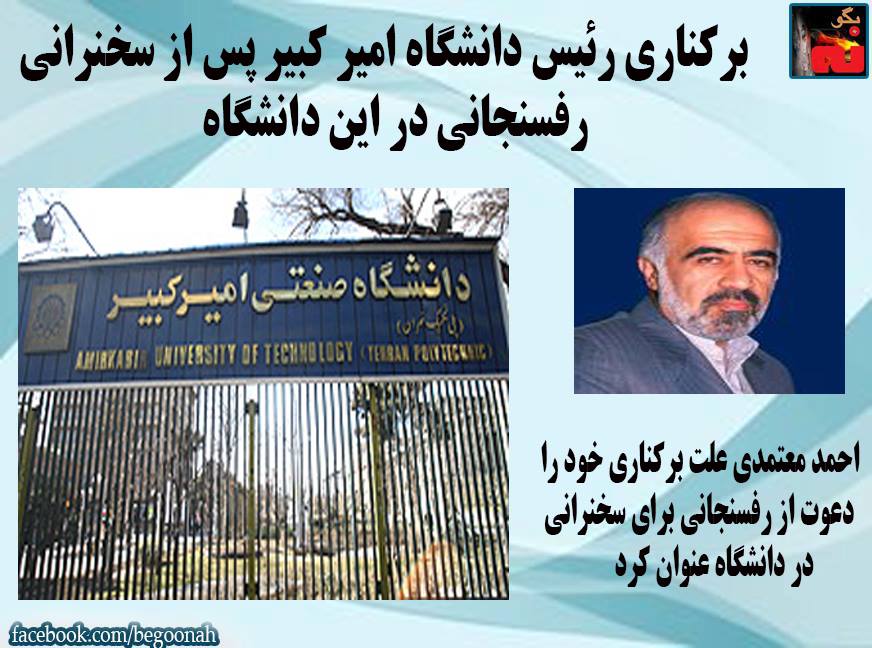 بگونه: بهدنبال سخنرانی رفسنجانی در دانشگاه امير كبير باند خامنهای رئیس این دانشگاه را برکنار کرد.