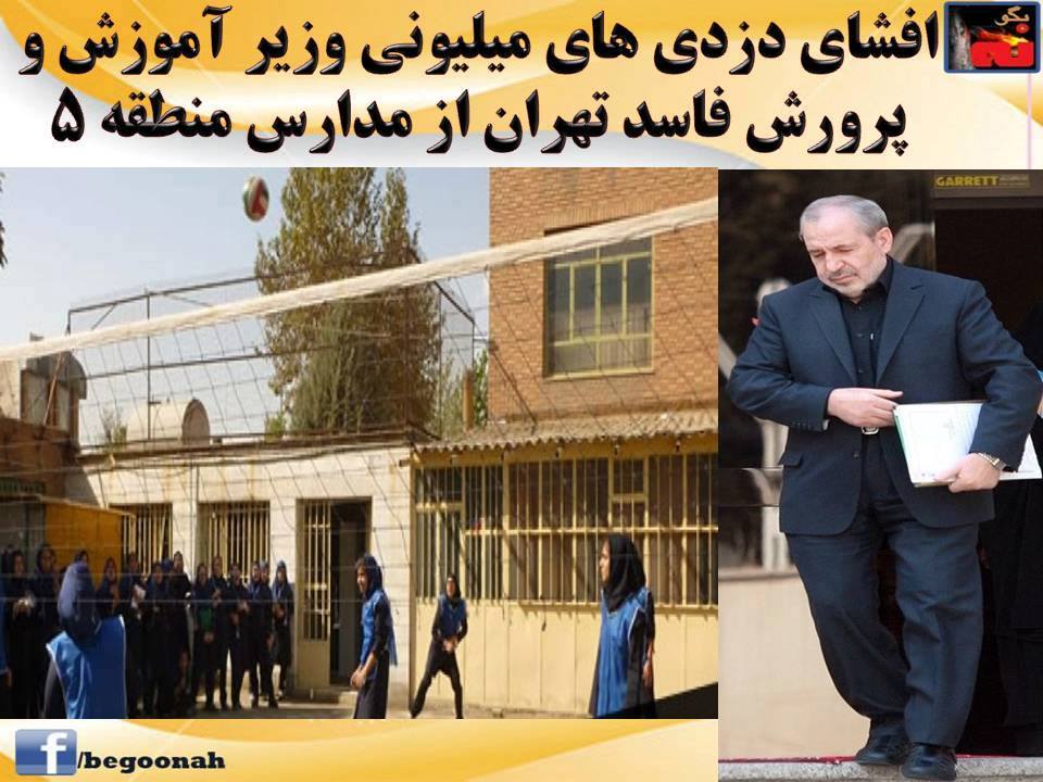 افشای دزدی های میلیونی وزیر آموزش و پرورش فاسد تهران از مدارس منطقه 5