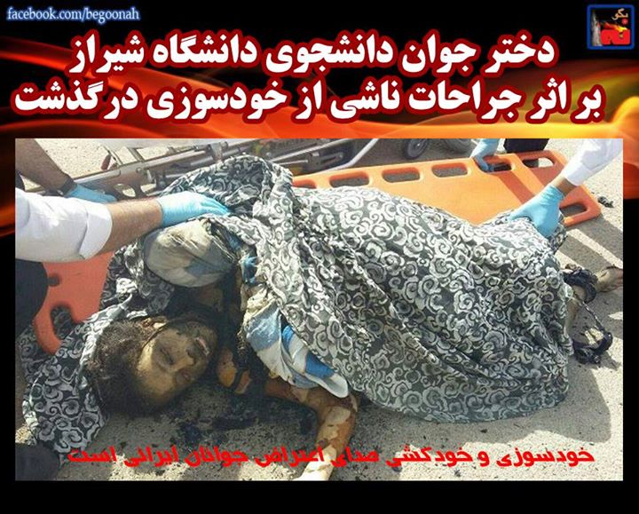 #بگونه : متاسفانه باخبر شدیم دختر جوان دانشجویی که چند روز پیش در پارکینگ دانشگاه شیراز دست به خود سوزی زده بود ساعتی پیش در بیمارستان درگذشت.