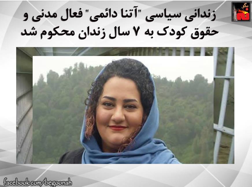به گزارش رسیده، آتنا دائمی، فعال مدنی و حقوق کودک ٢٠ اردىبهشت ماه ١٣٩٤به ٧سال زندان محكوم شد.