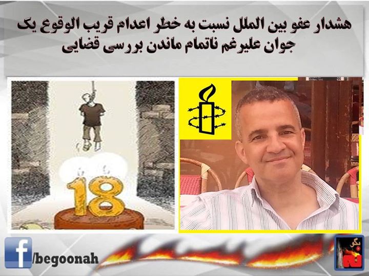 #بگونه: یک جوان ۲۴ ساله بنام حمید احمدی برای جرمی که در سن ۱۶ سالگی مرتکب شده و با وجود مراحل قضایی ناتمام در خطر اعدام قریب الوقوع قرار دارد. عفو بین الملل از رژیم ایران درخواست توقف هرنقشه ای برای صدور حکم اعدام این جوان را دارد. این سازمان تصریح میکند که حمید احمدی در سن نوجوانی در یک درگیری جمعی موجب مرگ یک مرد شده و باوجود تصویب دیوان عالی کشور مبنی بر بررسی مجدد پرونده وی در خطر اعدام قریب الوقوع قرار دارد. سعید بومه دوها معاون عفو بین الملل در امور خاورمیانه و آفریقا میگوید: «حکم اعدام اوج خشونت و یک مجازات عیر انسانی است و رژیم ایران بطور مداوم در حال نقض قوانین بین المللی مبنی بر عدم اعدام افراد بدلیل جرم آنها در دوران کودکی می باشد. حال آنکه اقدام به اعدام یک نفر هنگامی که پرونده وی هنوز تکمیل نشده یک نقض دیکرو دلیل بر عدم رعایت عدالت در ایران می باشد. مقامات ایران باید فورا این اعدام را متوقف کنند.»