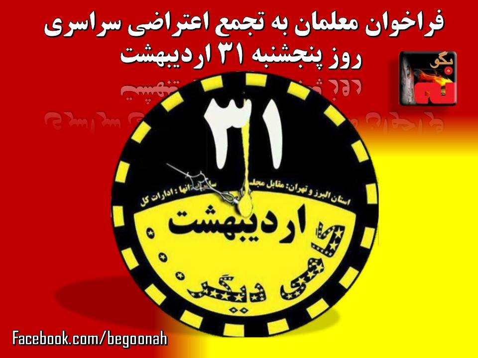 #بگونه: بنابر خبر دریافتی ازخبرگزاری قاصدان آزادی، معلمین روز ۳۱ اردیبهشت اعتراض سراسری خواهند داشت.
