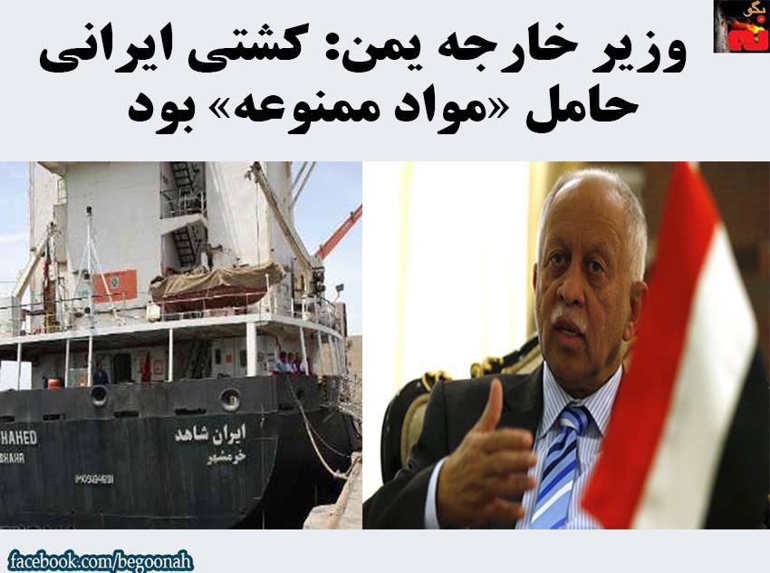 وزیر خارجه یمن: کشتی ایرانی حامل «مواد ممنوعه» بود