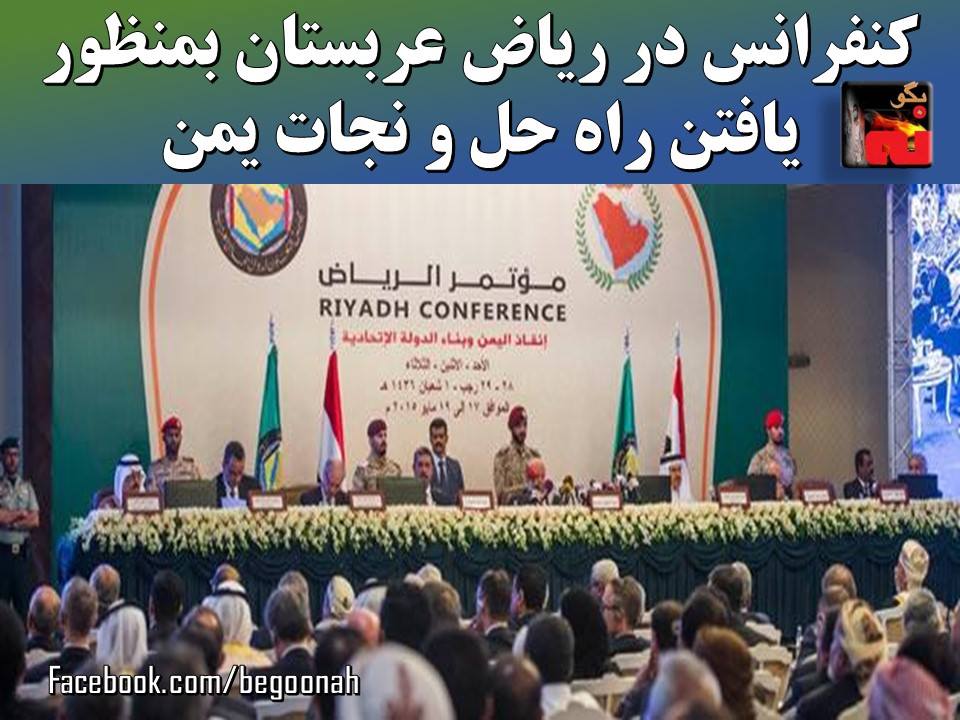 #بگونه: روز یکشنبه 27 اردیبهشت 94 کنفرانس نجات یمن در ریاض با حضور بیش از 400 شخصیت یمنی که تمامی احزاب سیاسی فعال را نمایندگی میکردند شروع بهکار کرد.