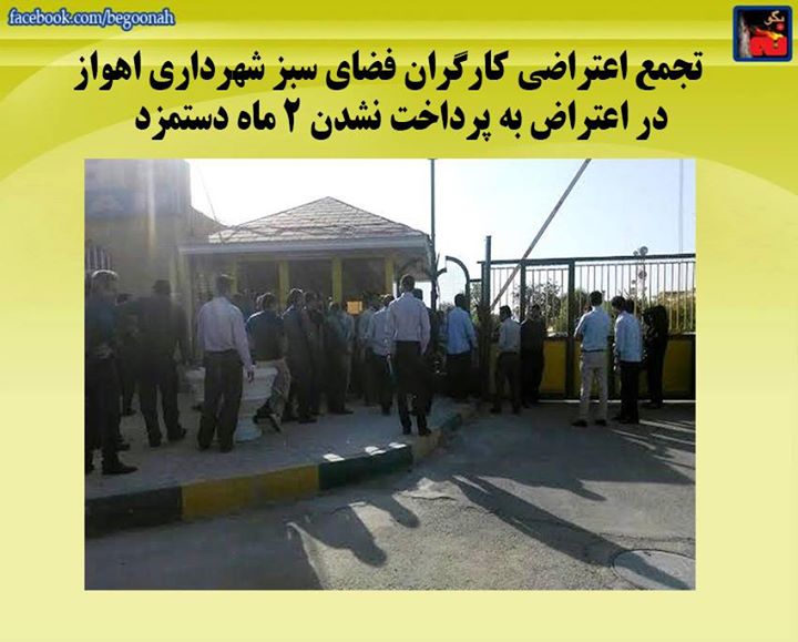 #بگونه : به گزارش رسیده از اهواز ، صبح روز سه شنبه ٢٩ اردیبهشت جمعی از کارگران زحمتکش فضای سبز شهر اهواز ، مقابل ساختمان شهرداری و شورای شهر اهواز تجمع اعتراضی بر پا کردند.