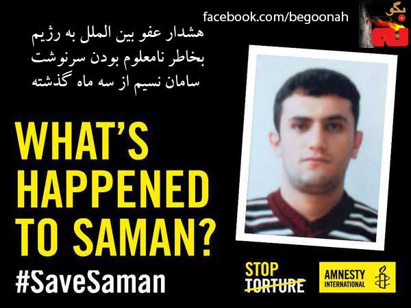 #بگونه: عفو بین الملل هشدارد داد: در سه ماه گذشته زندگی خانواده سامان تبدیل به یک کابوس شده است. ازانجا که اعدام این زندانی سیاسی کُرد در سن 19 سالگی با واکنشهای شدید بین المللی روبرو شد, سرکردگان رژیم وی را به مکانی نامعلوم انتقال داده و خانواده اش را در ابهام نگهداشته اند.