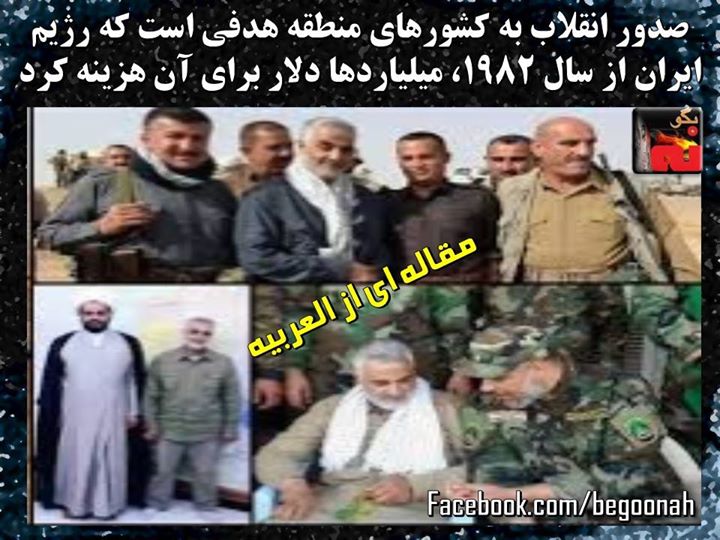 حمایت ایران از گروههای شبه نظامی در کشورهای عربی دیگر یک مساله محرمانه نیست. قاسم سلیمانی فرمانده سپاه قدس با انتشار عکسهای خود که به همراه گردانهایش در عراق و سوریه جولان میدهد، فخر میفروشد.»