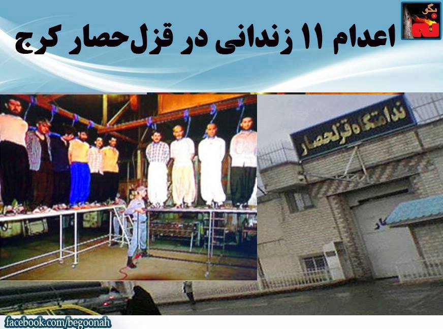 #بگونه: بنا به اخبار رسیده از منابع حقوق بشری، سحرگاه امروز، پنجشنبه، ۳۱ اردیبهشت، ۱۱ انسان در محوطه زندان قزلحصار کرج از طریق چوبه دار اعدام شدند.