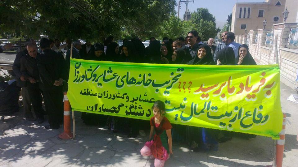 #بگونه: عشایر منطقه دشت گز گچساران به دلیل جلوگیری از تخریب خانه هایشان مقابل استانداری کهگیلویه و بویراحمد تجمع کردند.