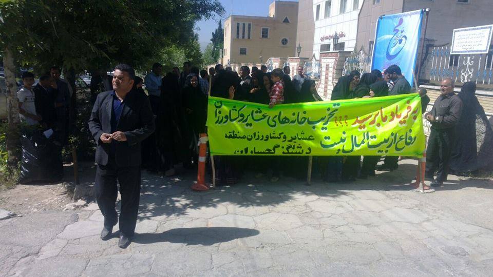 به گزارش «بویر نیوز»، تجمع کنندگان با در دست داشتن پارچه نوشته هایی نسبت به اقدام ماموران رژیم در منابع طبیعی برای تخریب خانه هایشان اعتراض کردند.