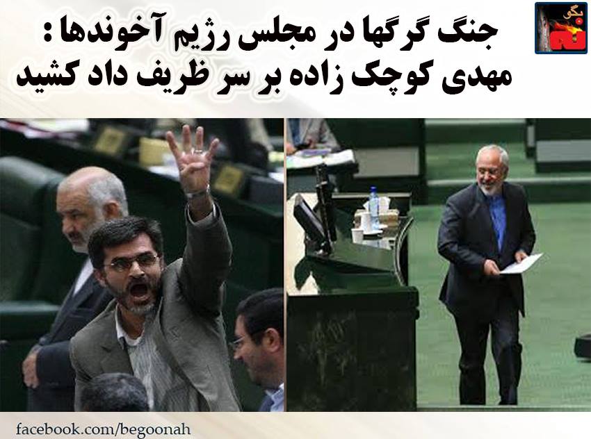 جنگ گرگها در مجلس رژیم آخوندها : مهدی کوچک زاده بر سر ظریف داد کشید