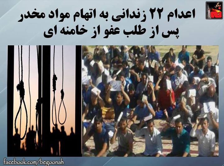 #بگونه: سازمان حقوق بشر ایران، با صدور بيانيه اى از اعدام 22 زندانى به اتهام مواد مخدر در روز دوشنبه ۴ خرداد ماه در زندان قزلحصار کرج خبر داد.