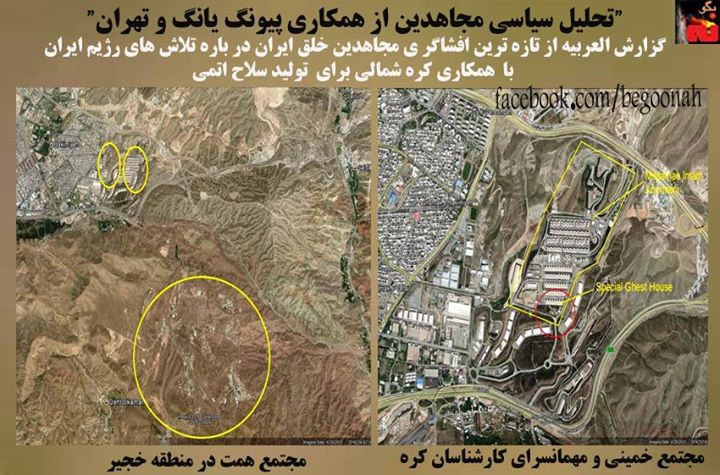 #بگونه: سايت العربيه در باره تازه ترين افشاگري سازمان مجاهدین خلق ایران روز پنجشنبه 28 مه 2015، گزارش مفصلي منتشر كرده است . بنابه اين گزارش رژيم مجاهدين خلق ايران جمهوری اسلامی را متهم به همکاری گسترده در زمینه تسلیحات هسته ای با کره شمالی کرد و تاکید نمود که رژيم ايران از تلاش برای دست یابی به سلاح اتمی دست برنخواهد داشت.