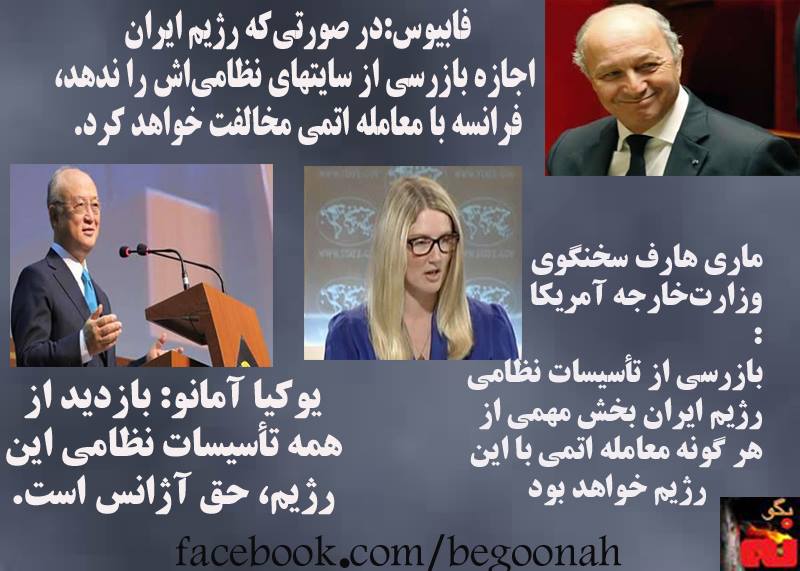 #بگونه: در تازه ترين موضعگيريها در رابطه با مذاكرات اتمي غرب با رژيم ايران بازرسي از تاسيسات اتمي رژيم بخش مهمي از توافق اعلام گرديد.