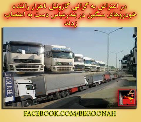روز چهارشنبه 6خرداد نزدیک به 4هزار راننده خودروهای سنگین در بندرعباس در اعتراض به گران شدن قیمت گازوییل دست به اعتصاب زدند.
