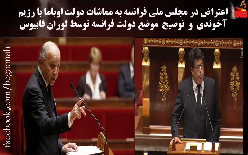 اعتراض در مجلس ملی فرانسه به مماشات دولت اوباما با رژیم آخوندی و توضيح موضع دولت فرانسه توسط لوران فابيوس