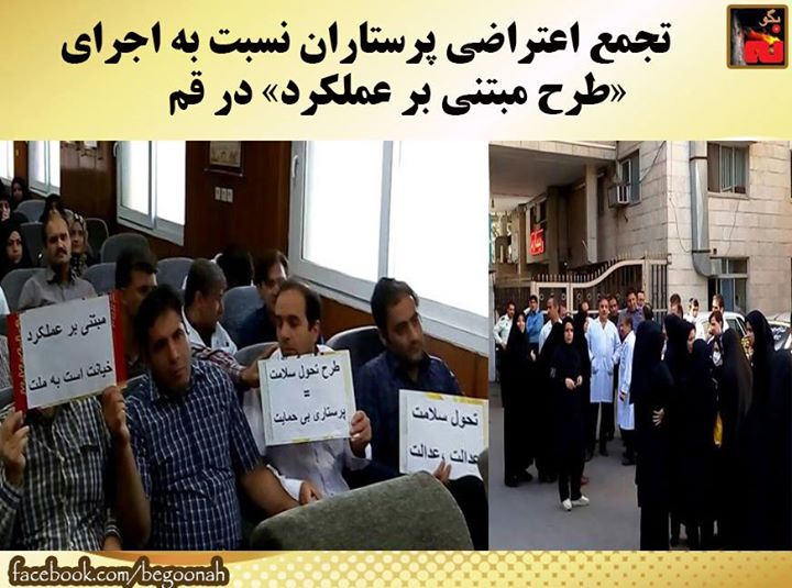 #بگونه : پرستاران بیمارستان کامکار قم، صبح روز شانزدهم خرداد در مقابل درب ورودی اورژانس این بیمارستان نسبت به نتایج اجرای «طرح مبتنی بر عملکرد» در این بیمارستان تجمع اعتراضی برپا کردند.