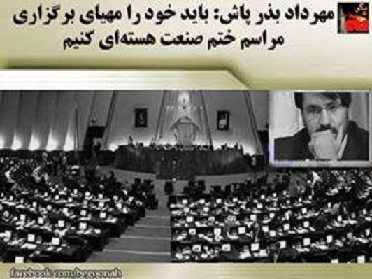 #بگونه: مهرداد بذرپاش عضو هیأت رئیس مجلس رژيم ضد ايراني آخوندها در جلسه یکشنبه 17خرداد 94 اين مجلس، تیم مذاکره کننده رژیم را بهخاطر مواضع ذلتبار در جریان مذاکرات اتمی مورد حمله قرار داد و نسبت به عواقب زهرخوران اتمی هشدار داد و گفت:محدویتهای هستهای پذیرفته شده توسط ایران که باید در فرصت کافی روی آن بحث مفصل کرد و به ازای آن همانطور که گفته شد، باید خود را مهیای برگزاری مراسم ختم صنعت هستهای کنیم، که بعد از این یک صنعت فانتزی بیخاصیت خواهیم داشت، توافقی که ما را حدود 15سال فریز میکند و فعالیتهای ما را متوقف میکند، 15سالی که خود در دوره محصور تکنولوژیهای روز دنیا یک عمر تکنولوژی محسوب میگردد و هر روز در دنیای فناوری باید آماده عرضه تکنولوژیهای جدید و نوین باشیم.